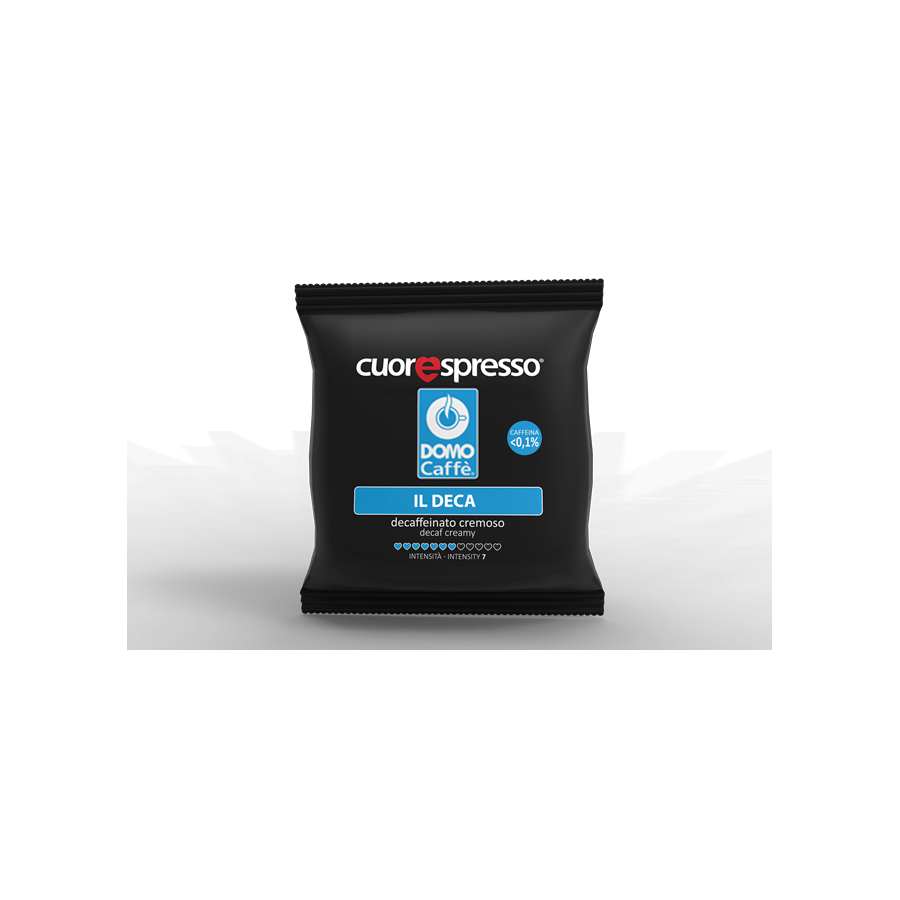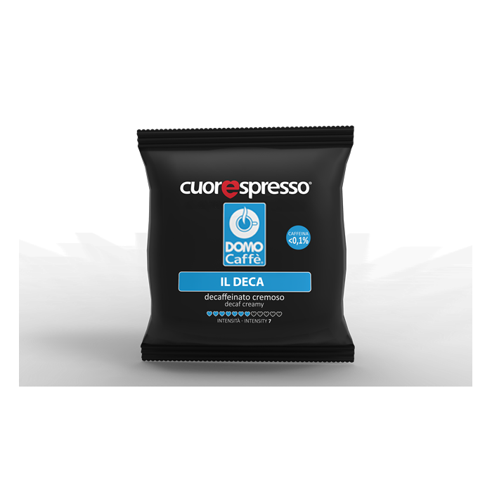 Cutie cu 50 capsule monodoza de cafea fara cafeina, care pastreaza inalterat gustul expresso-ului italian cremos si plin.