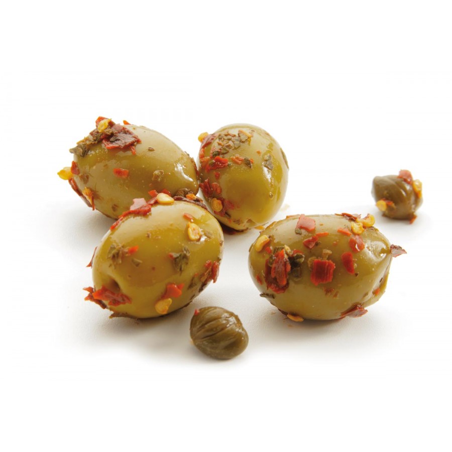 Ingrediente: masline, sare, ulei si mirodenii ( oregano, ardei iute, chimen salbatec, usturoi feliat).