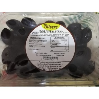 Masline negre coapte in cuptor, gata de consum. Ambalate in tavita transparenta, 400 gr produs.